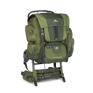 Product Description : High Sierra brings back the external frame pack with Foxhound 50. This 50 liter top load pack is lightweight but heavy on features. Weighing in at only 5 pounds this pack includes a mesh back panel, contoured backpack straps. front load sleeping bag compartment, bottom compression straps, sternum strap, hydration reservoir and convenient pockets.